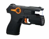 电击弹:电击弹飞针通过刺入衣物或者接触表皮对人体施加安全电流,使得目标肌肉痉挛丧失行动力。