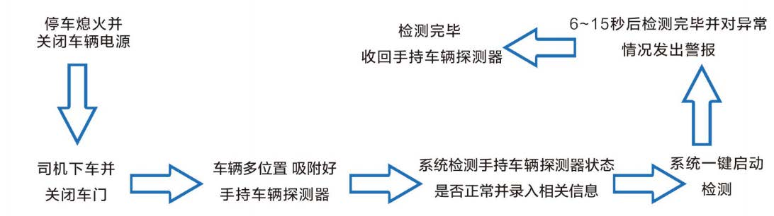 无线智能车辆生命体征检测系统是一种利用微弱震动传感信号对车辆内藏匿人员进行检测的一套综合应用系统,它由手持车辆探测器、地面感应探测器、检测主机及上位机软件系统等组成,是一套软件和硬件相结合的智能化车辆防藏匿安检系统。它的基本原理是通过吸附在被检车辆上的手持车辆探测器,将采集到的一路或者多路震动数据通过无线 ( 或有线 ) 的方式发送给检测主机,同时地面感应传感器也将地面环境震动数据发送给检测主机,由检测主机中的控制主板及上位机软件进行综合分析,排除环境震动数据带来的干扰,并过滤出人体心跳频率范围内的震动数据,以这种震动数据为基础通过独有算法分析并快速得出检测结果,并在检测主机的显示屏幕上展示出检测结果 , 同时伴随声光报警。