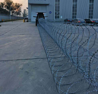 7、刀片刺网展开尺寸:长 200m, 宽 1.5m, 高 1.5m, 双圈间距 200mm-400m, 双圈间距决定了刀片刺网展开总长度,布