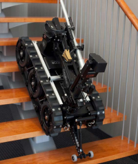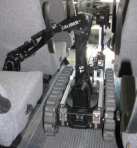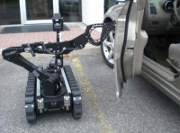 机动性:T5 机器人宽度仅为 44cm,特别适合排爆及特警在狭小空间内进行排爆工作。重量只有 64kg,可以放在车辆后备箱中运输。加长臂伸展长度为 267cm,